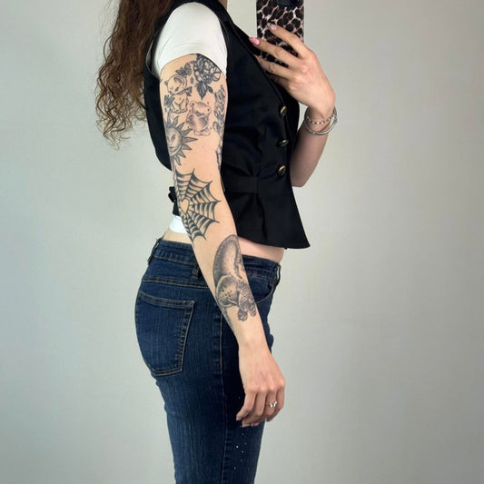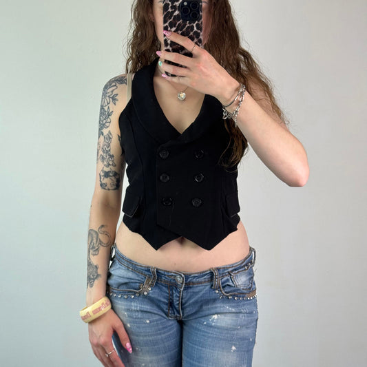 Y2K vintage waistcoat vest button up v neck slight crop black