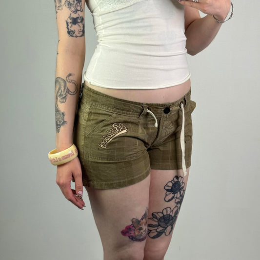 Y2K vintage ultra low rise tartan check print board shorts drawstring mini