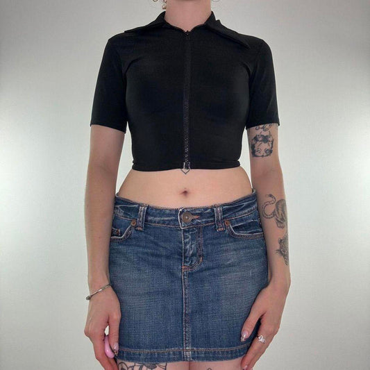 Y2K vintage zip up short sleeve collared crop top stretchy fitted v neck low cut