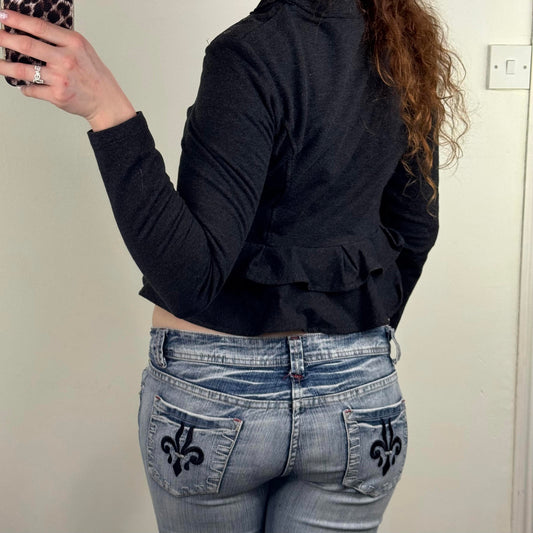 Y2K vintage zip up jumper grommet ruffle frill marl dark grey archive cropped