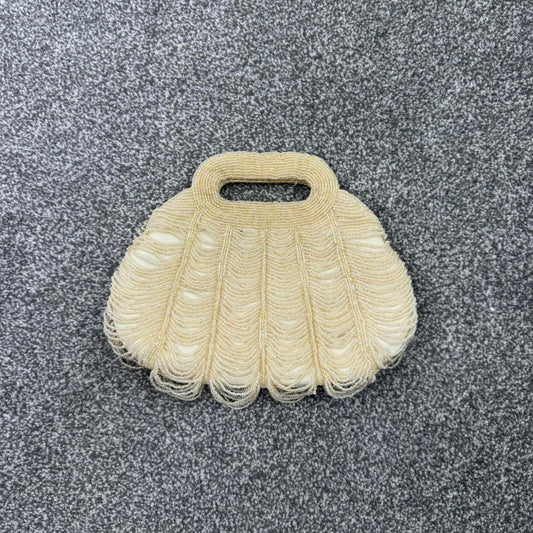 Y2K vintage beaded mini crossbody bag beads handbag evening cream scallop hem