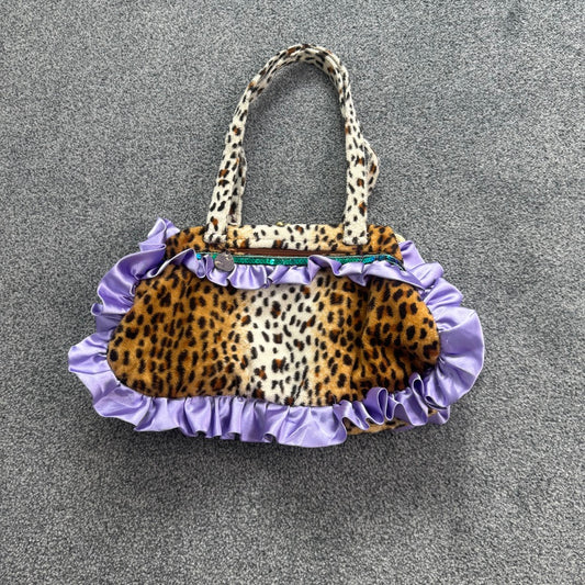 Y2K vintage leopard print jewel ruffle shoulder bag