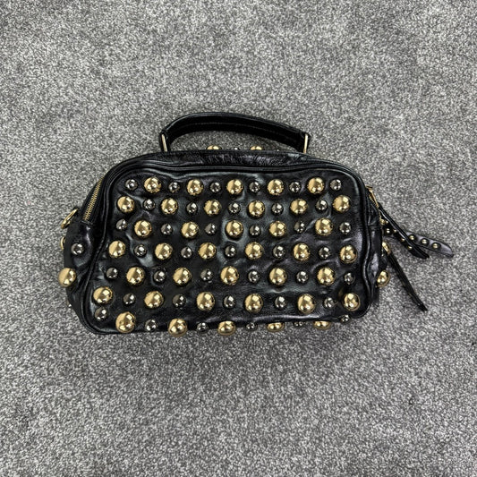 Y2K vintage faux leather shoulder bag zipper studded buckle medium size