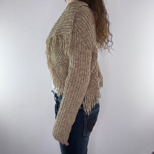 Vintage Y2K chunky knit fringe cardigan