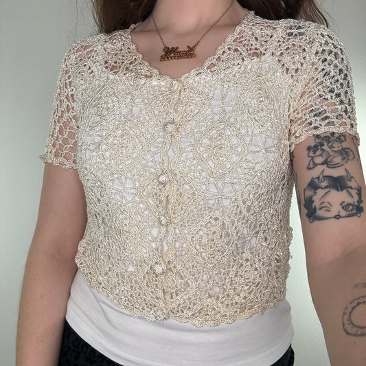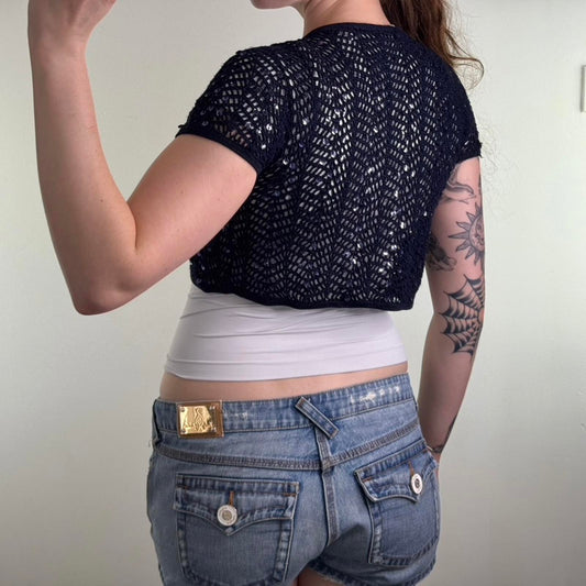 Y2K vintage crochet short sleeve cardigan