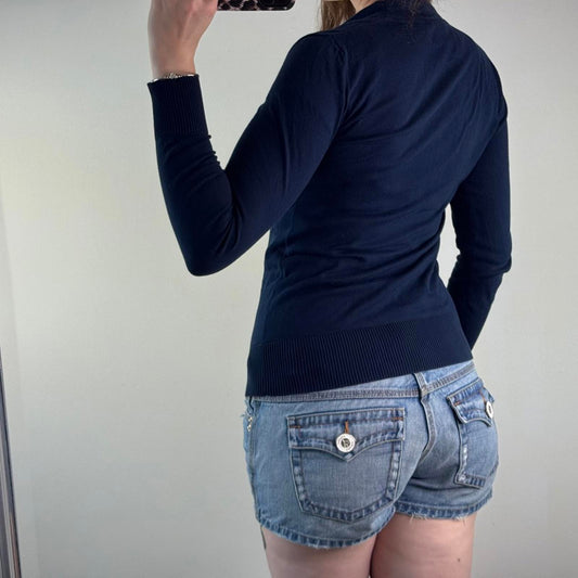 Tory Burch button up cardigan cotton navy v neck long sleeve fine knit