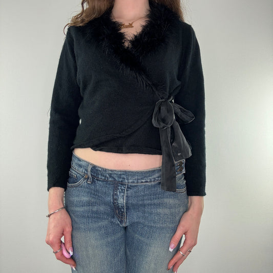 Sold outY2K feather trim bow wool cardigan
