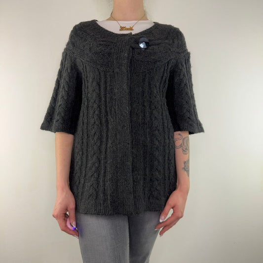 Y2K vintage 3/4 sleeve knit jumper cable archive avant garde cardigan grunge