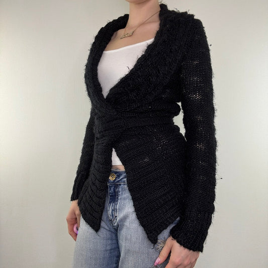 Y2K vintage archive cardigan v neck with belt tie bow chunky knit wraparound