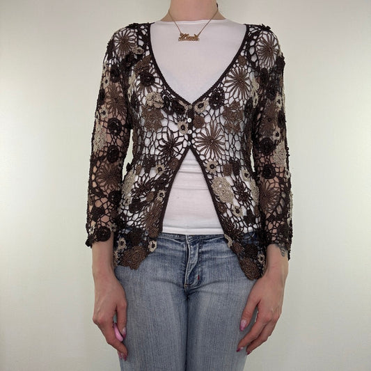 Y2K vintage crochet floral cardigan v neck boho fairy