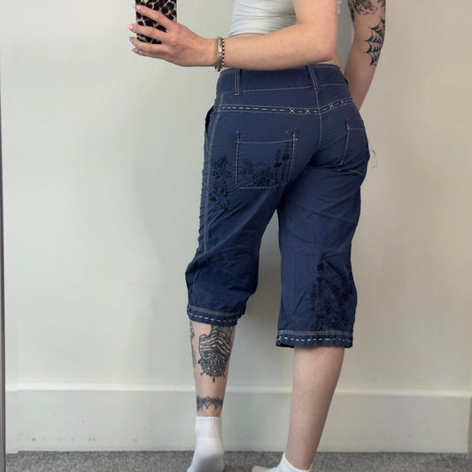 Y2K vintage low rise capri cargo trousers floral embroidered pattern baggy