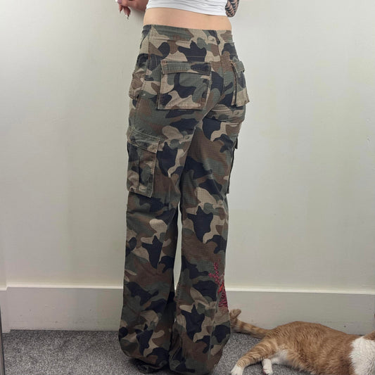 Y2K vintage mid rise baggy camo trousers cargo pants camouflage embroidery