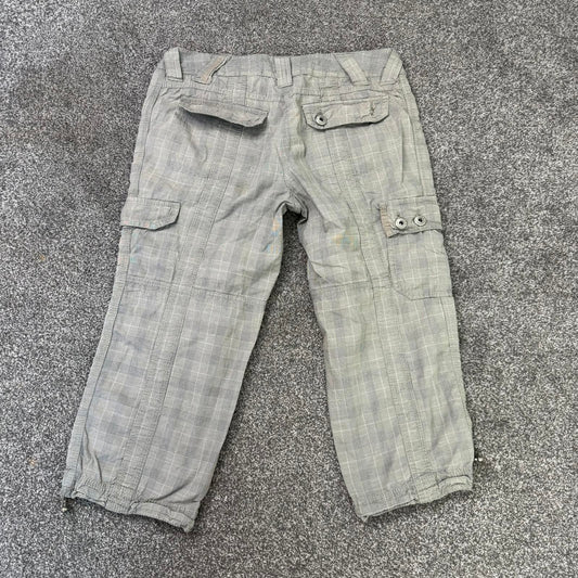Y2K vintage low rise cropped cargo trousers capri crop plaid tartan toggle