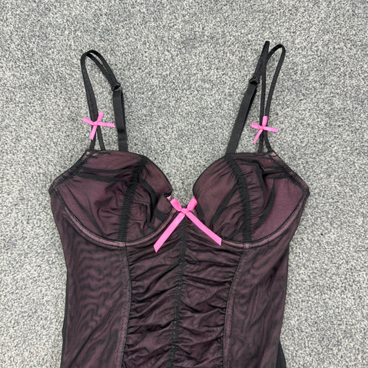 Y2K mesh ruched pink black bow corset