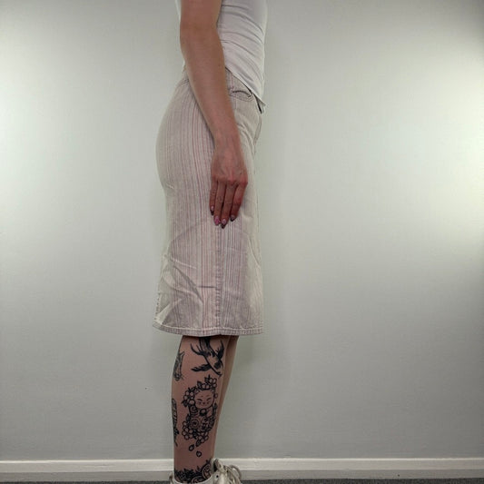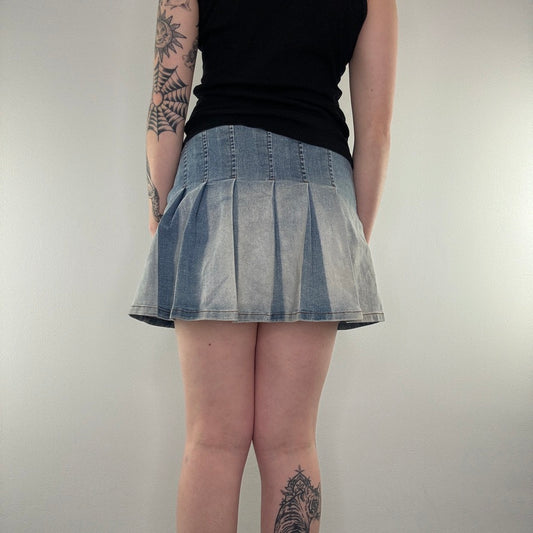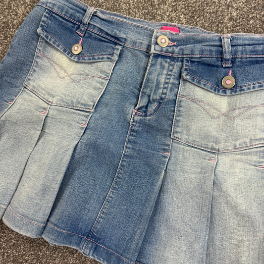Y2K vintage faded denim pleated pink contrast stitch mini skirt