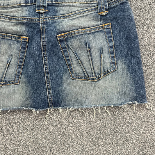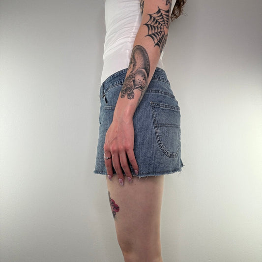 Y2K vintage low rise faded denim fraying hem mini skirt