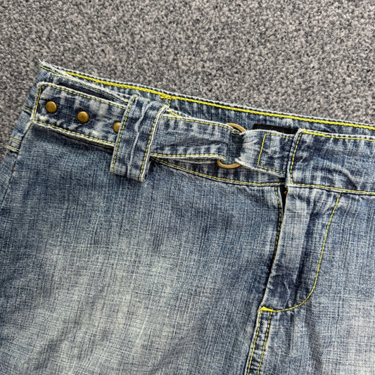 Y2K mid rise faded denim buckle belt studded mini skirt