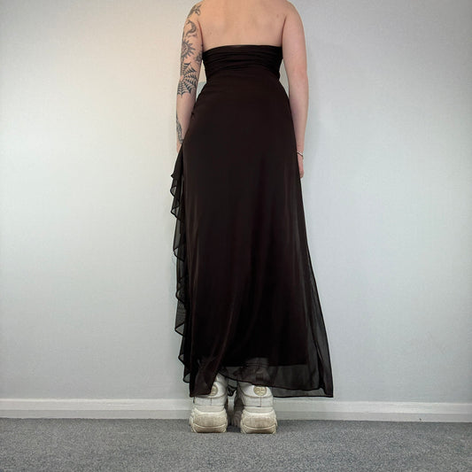 Y2K Betsy & Adam ruched ruffle rhinestone halter neck formal maxi dress