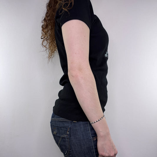 Vintage Jane Norman tank top lace trim sequin embellished ruched bust racer back