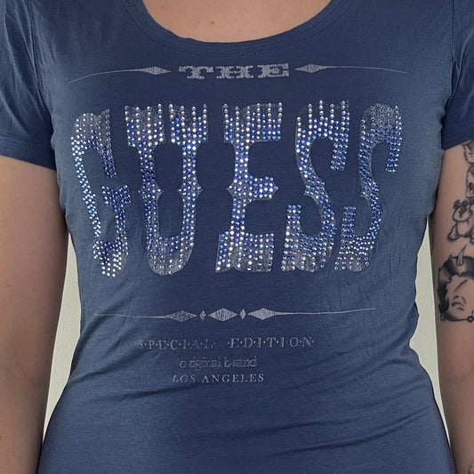 Y2K vintage Guess rhinestone top graphic print text spell out western mcbling