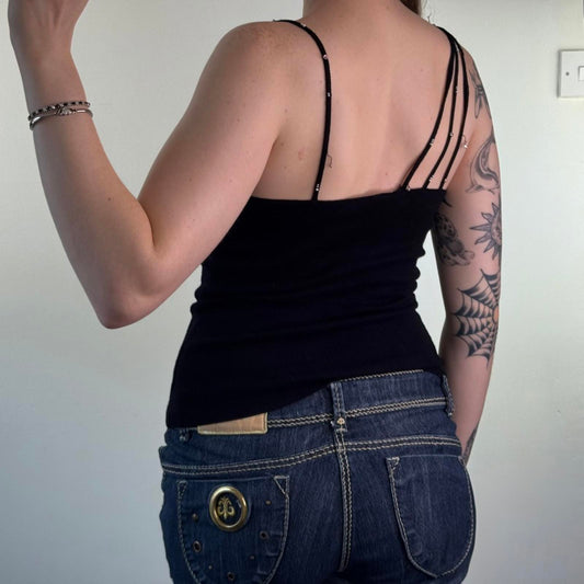 Y2K vintage fine knit cami top strappy rhinestones embellished flowers beaded