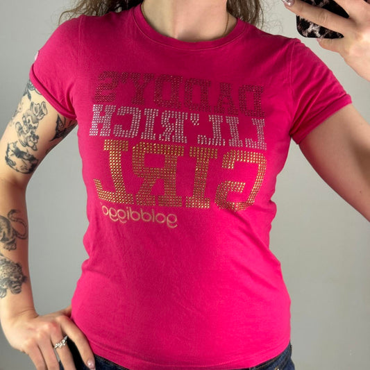 Y2K vintage Golddigga baby tee t shirt short sleeve rhinestone graphic print top