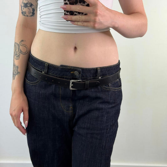 Y2K vintage genuine leather rhinestone flower studded rectangle belt studded