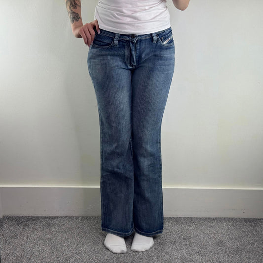 Y2K vintage low rise slim straight leg bootcut jeans faded denim rhinestones