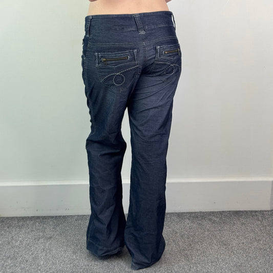 Y2K vintage mid rise baggy wide leg flared denim jeans lightweight embroidered