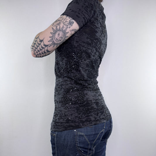 Y2K vintage low rise denim skinny jeans rhinestones distressed