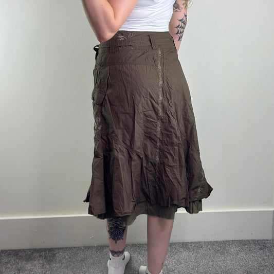 Y2K vintage midi skirt floral embroidery sequin embellished cargo with belt