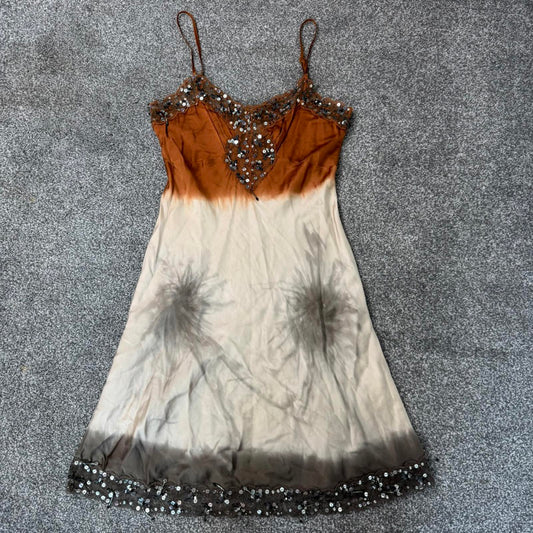 Y2K vintage Pinko 100% silk ombre sequin beaded embellished mini dress lace trim