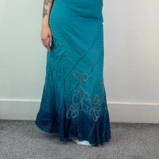 Y2K vintage ombre polka dot embroidered floral light dark blue a line size 12