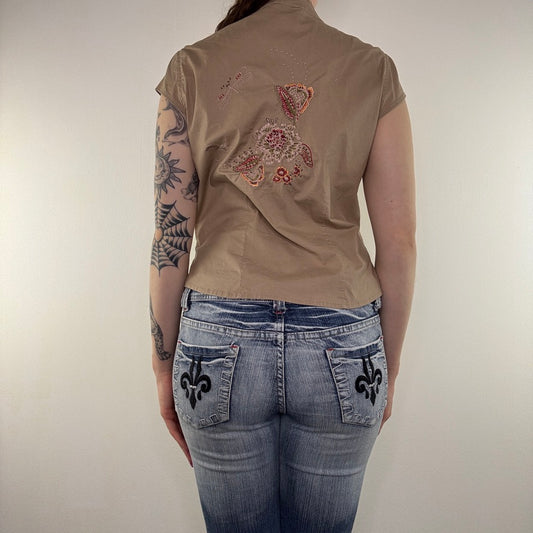 Y2K vintage mid rise bootcut flare denim jeans stretchy faded embroidered