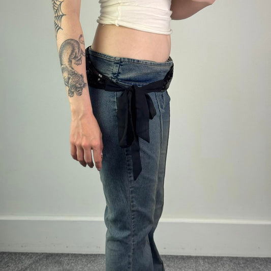 Y2K vintage sequin embellished belt tie adjustable bow black