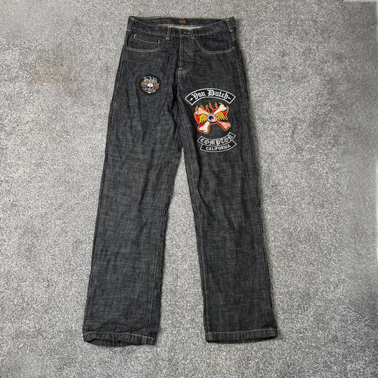 Y2K vintage Von Dutch straight leg embroidered patches jeans