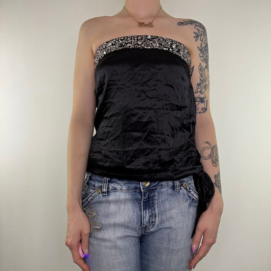 Y2K vintage silk top strapless beaded bow party embellished sequin going out