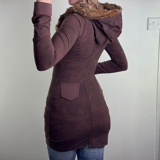 Y2K vintage faux fur zip up chunky knit hoodie mcbling