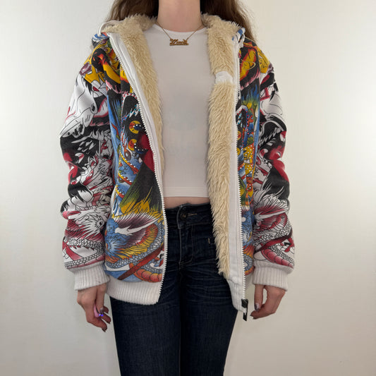 Y2K vintage Ed Hardy zip up hoodie slight cropped fit tattoo graphic print