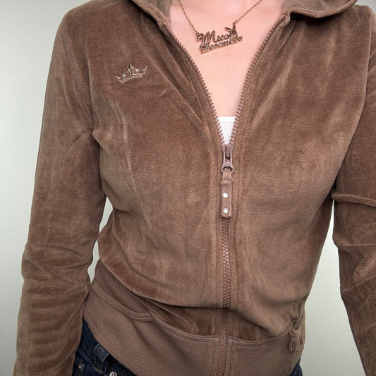 Y2K vintage velour crown rhinestone zip up hoodie