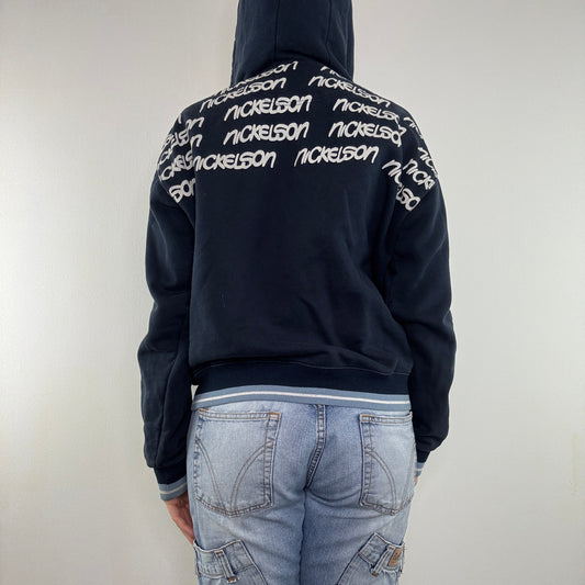 Y2K vintage navy full zip up baggy hoodie spell out graffiti