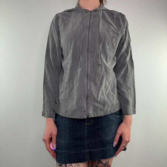 Y2K vintage archive zip up lightweight hoodie jacket grey with hood drawstring