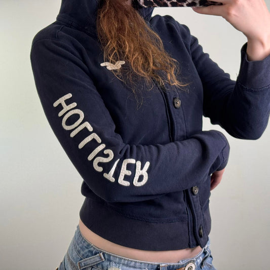 Y2K vintage Hollister button up hoodie navy white lightweight