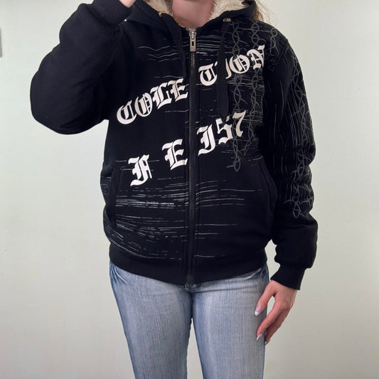 Y2K vintage heavyweight faux fur lined graphic zip up hoodie