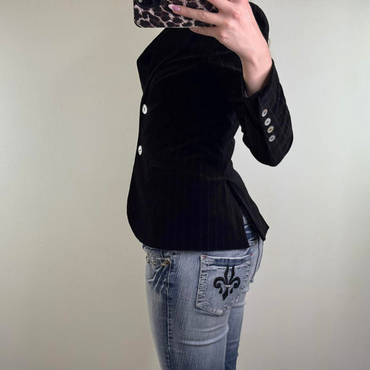 Y2K vintage velour pinstripe blazer jacket shell button up shoulder pad tailored