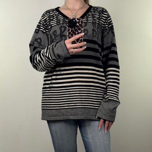 Y2K vintage fine knit stripe sparkly jumper black silver glitter