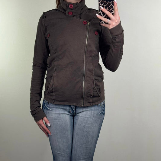 Y2K vintage asymmetrical zipper jumper buttons archive brown high neck brown