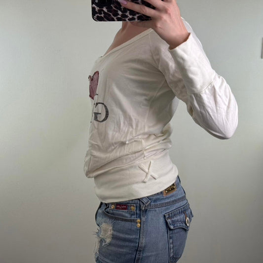 Y2K vintage Guess slouchy jumper rhinestone i love lightweight graphic print