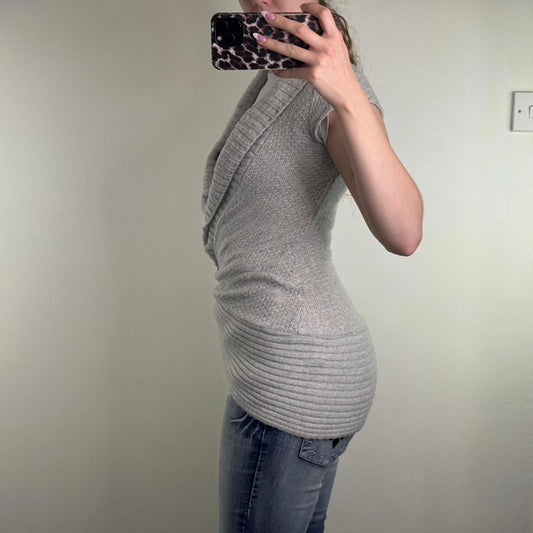Y2K vintage Jane Norman short sleeve knitted jumper side buckle deep v neck