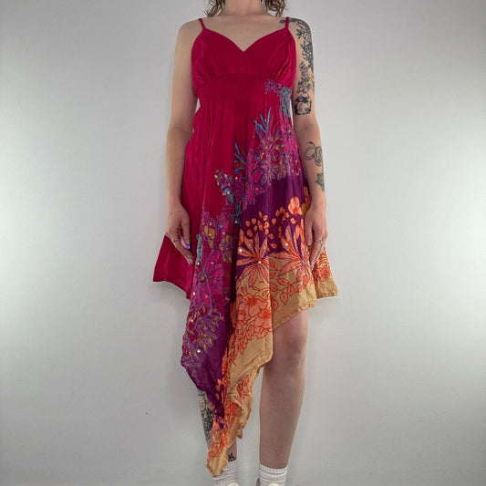 Y2K asymmetrical floral sequin floaty fairy maxi dress